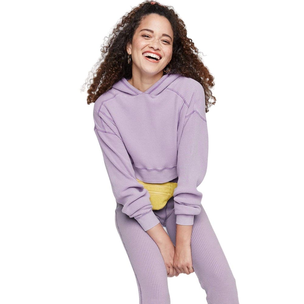 Wild Fable Women's Cropped Waffle Hoodie, X-Large, Purple - Free Shipping