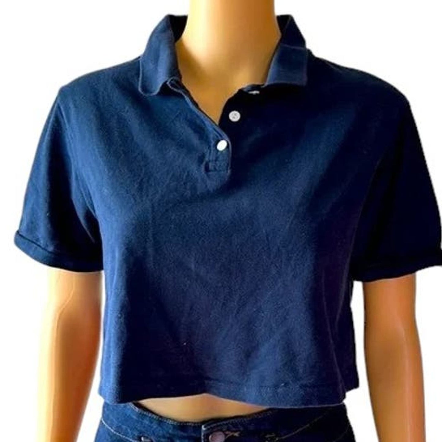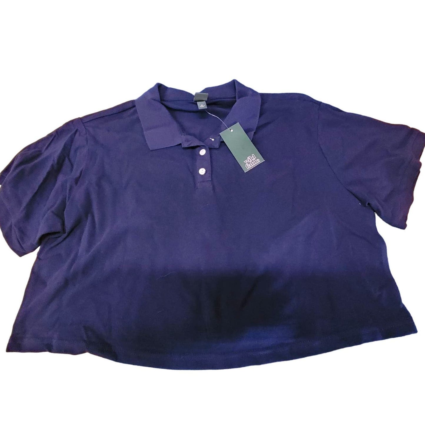 Wild Fable Women's Polo Style Cropped Top, 3-Button Shirt, Navy Blue, Medium