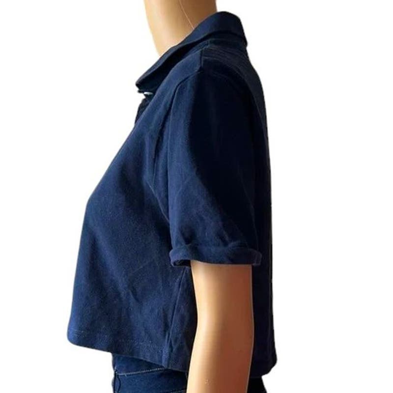 Wild Fable Women's Polo Style Cropped Top, 3-Button Shirt, Navy Blue, X-Large