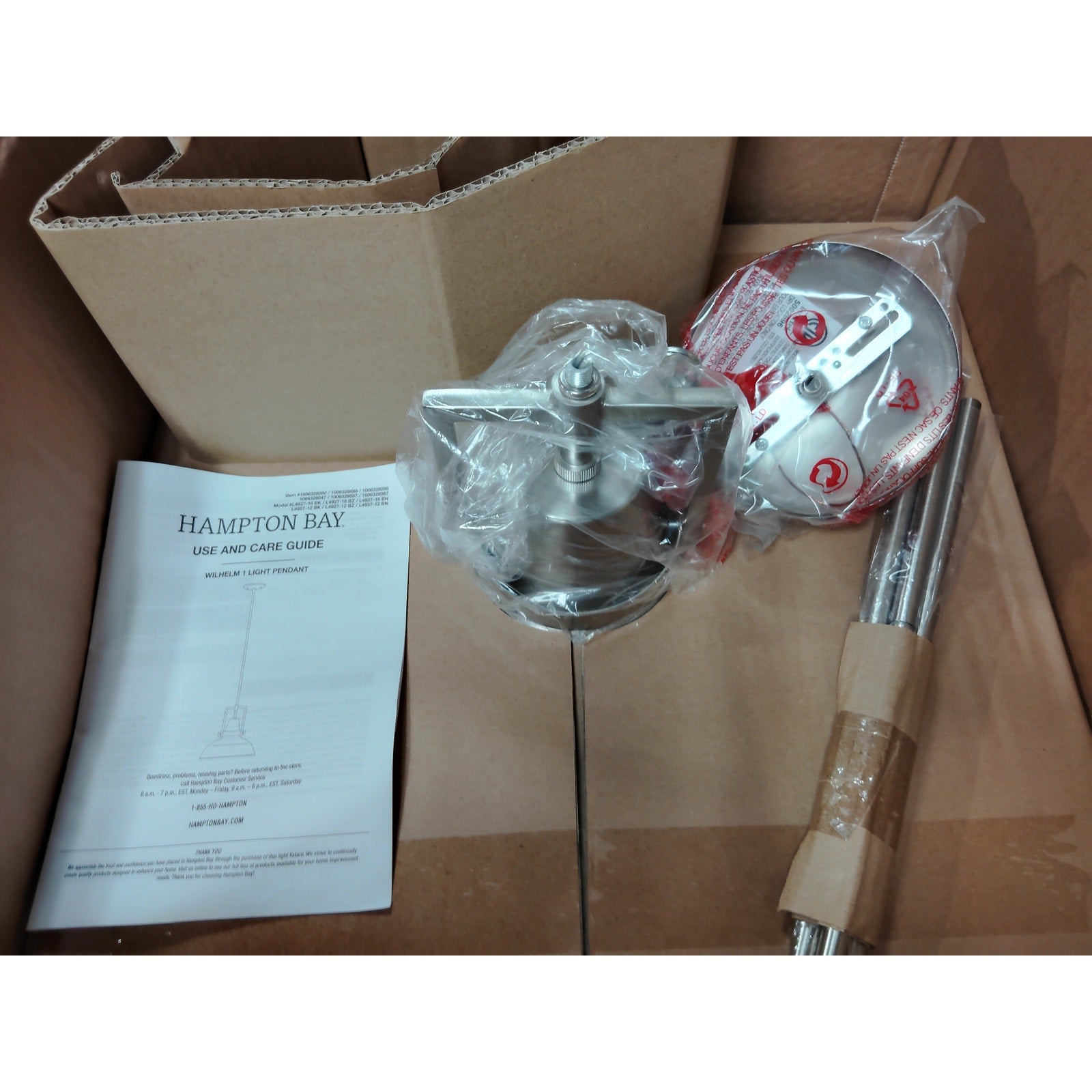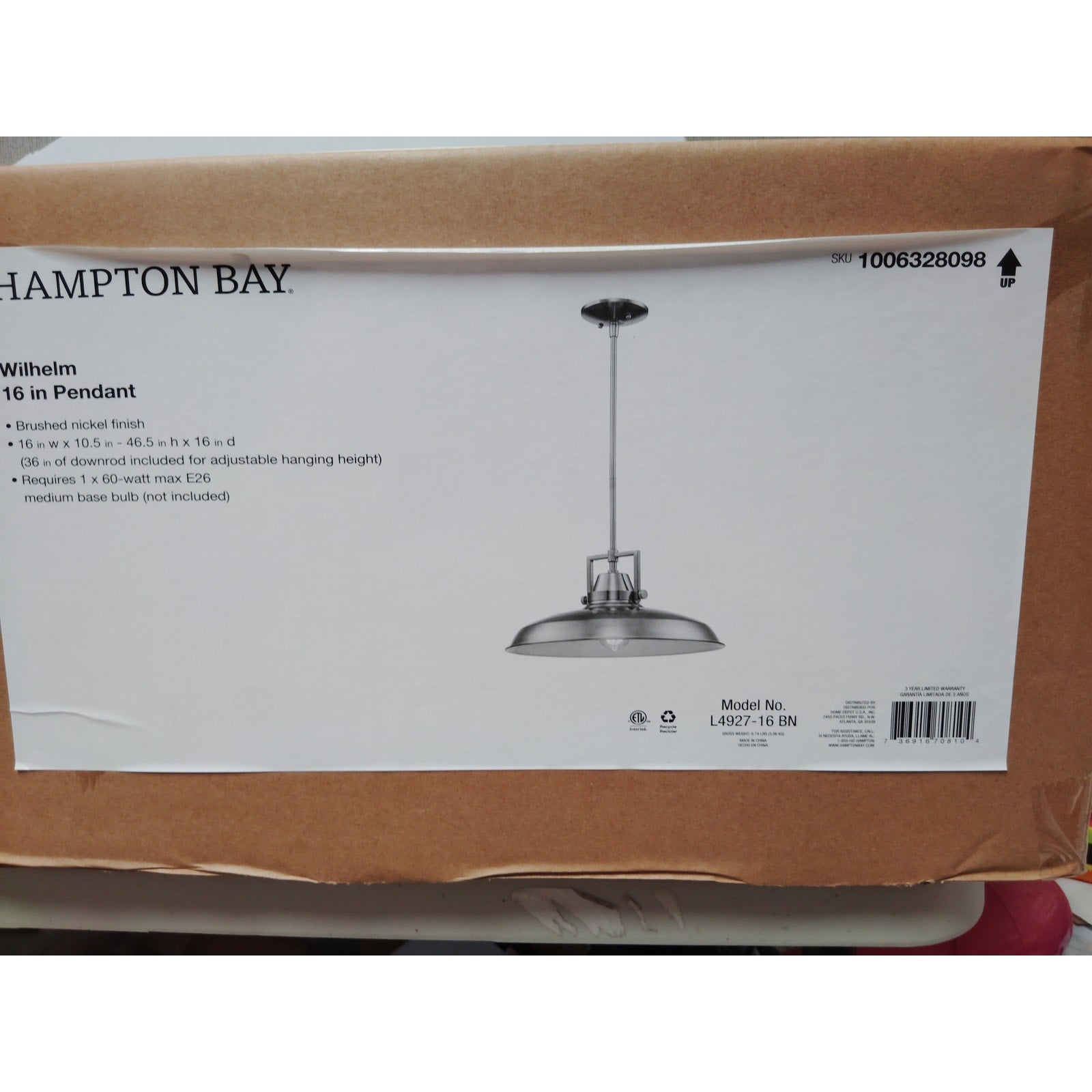 The Hampton Bay Wilhelm pendant light blends industrial charm with farmhouse elegance. Featuring a brushed nickel finish and a smooth metal dome shade, this fixture is perfect for kitchens, dining rooms, or entryways. It provides focused down-lighting and includes adjustable downrods for customizable hanging height. Ideal for modern rustic interiors, this pendant adds both style and function to your space.