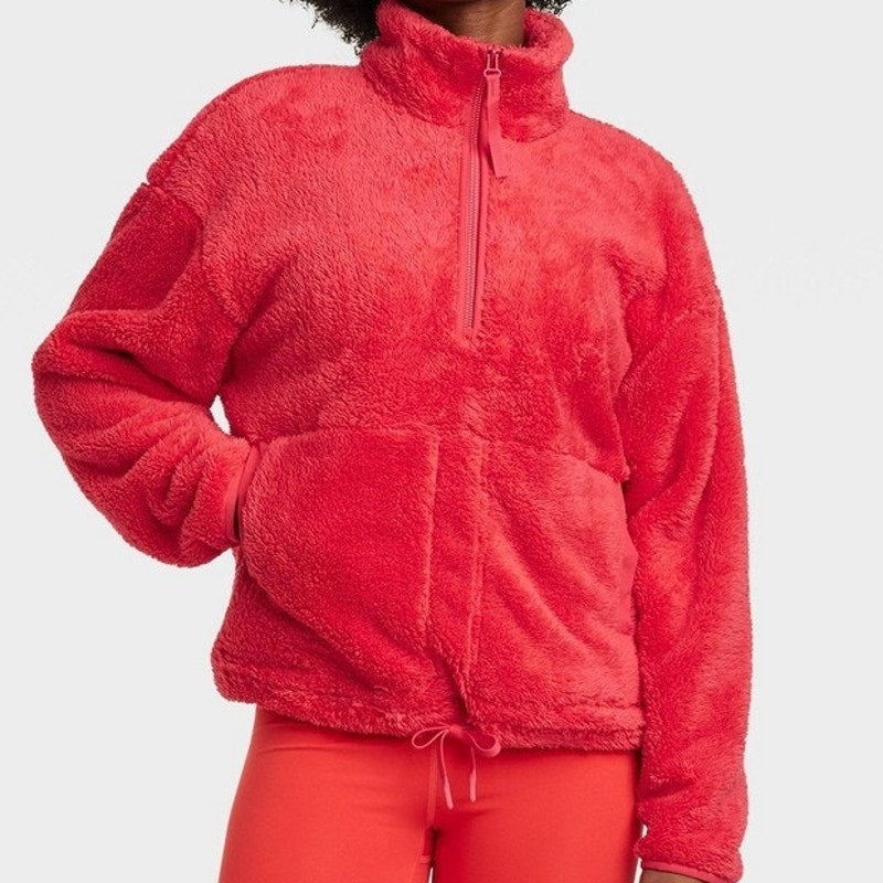 Women's High Pile Fleece 1/2 Zip Pull Over - All in Motion, Red Large