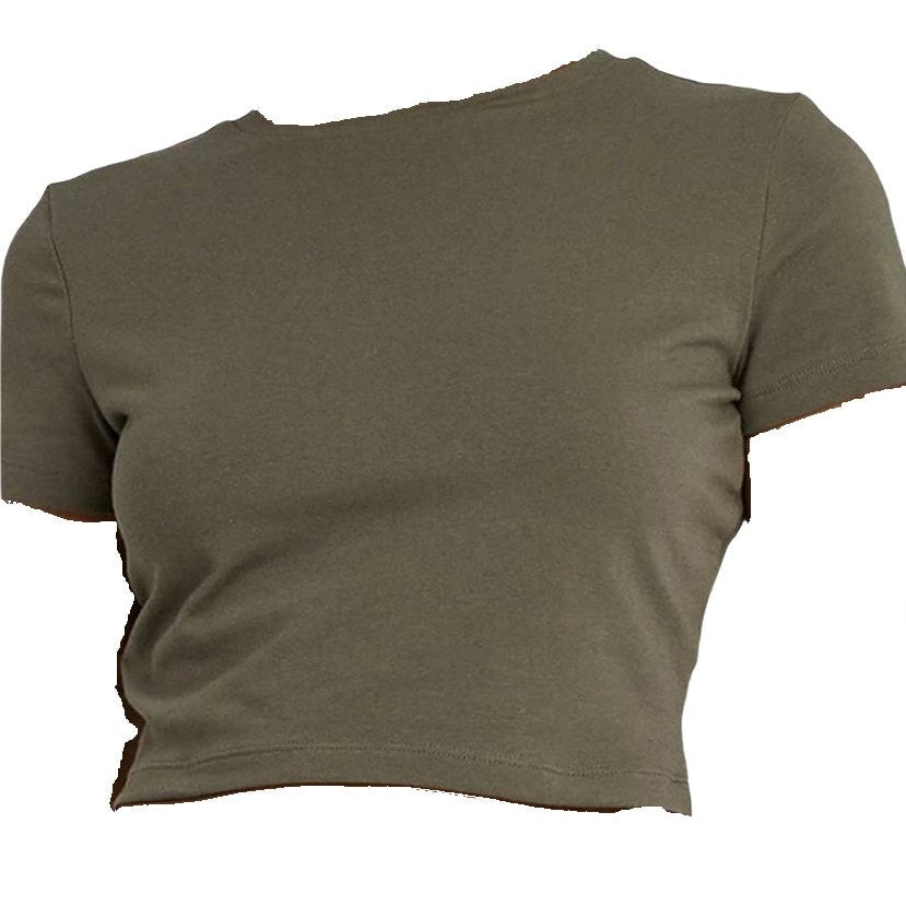Women's Large Short Sleeve Slim Fit Cropped T-Shirt, Olive Green - Free Shipping