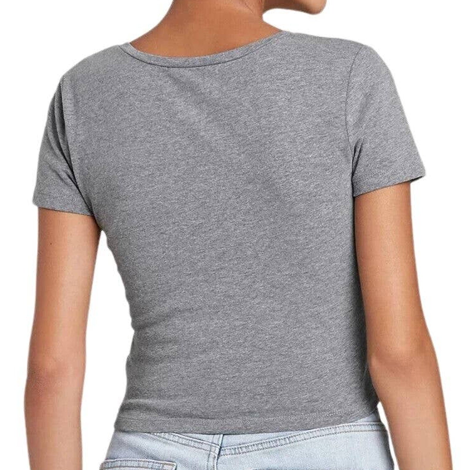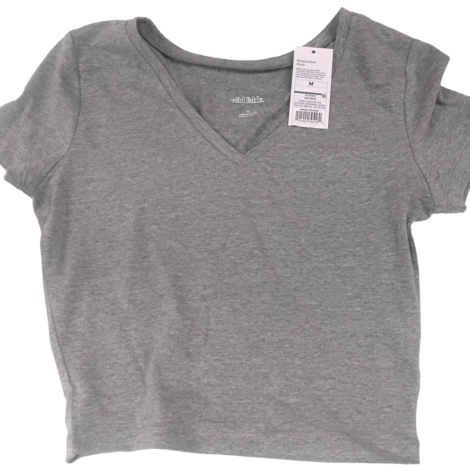 Women's Large Short Sleeve V-Neck Slim Fit Cropped T-Shirt - Wild Fable Gray