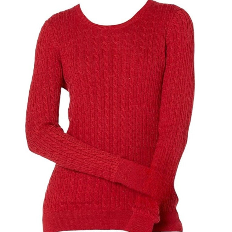 Women's Lightweight Long-Sleeve Cable Crewneck Sweater, Red, Small