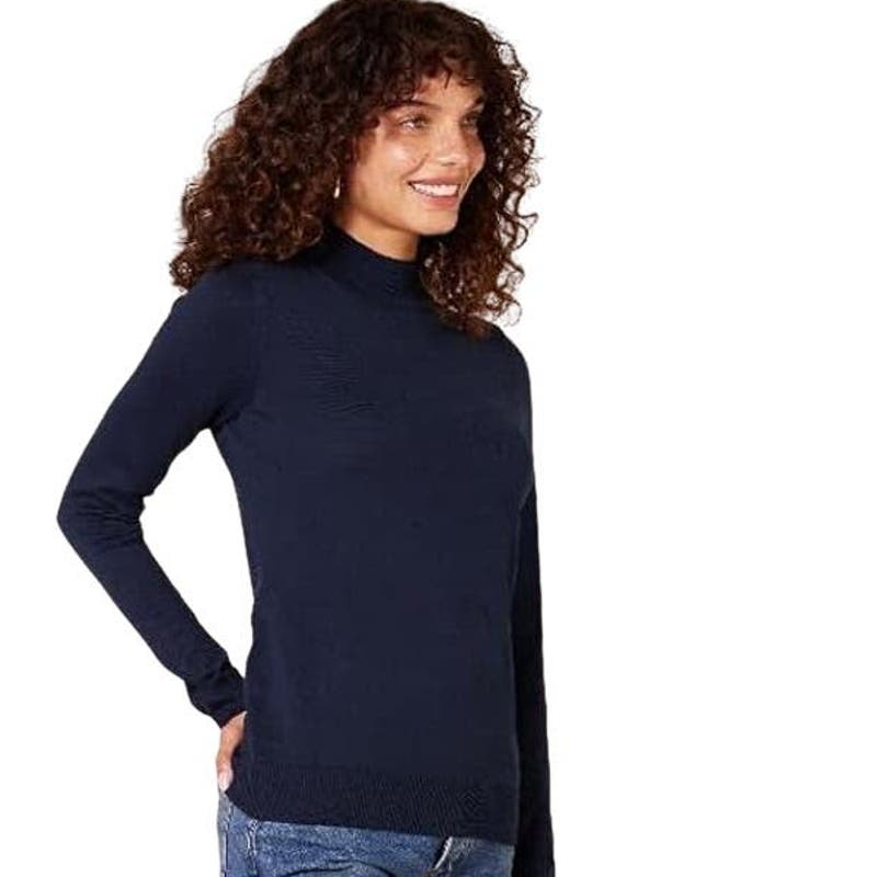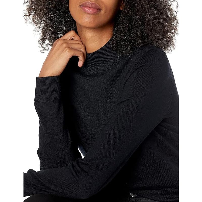 Women's Lightweight Mockneck Sweater, Black, Small (Cotton, Modal, Poly)