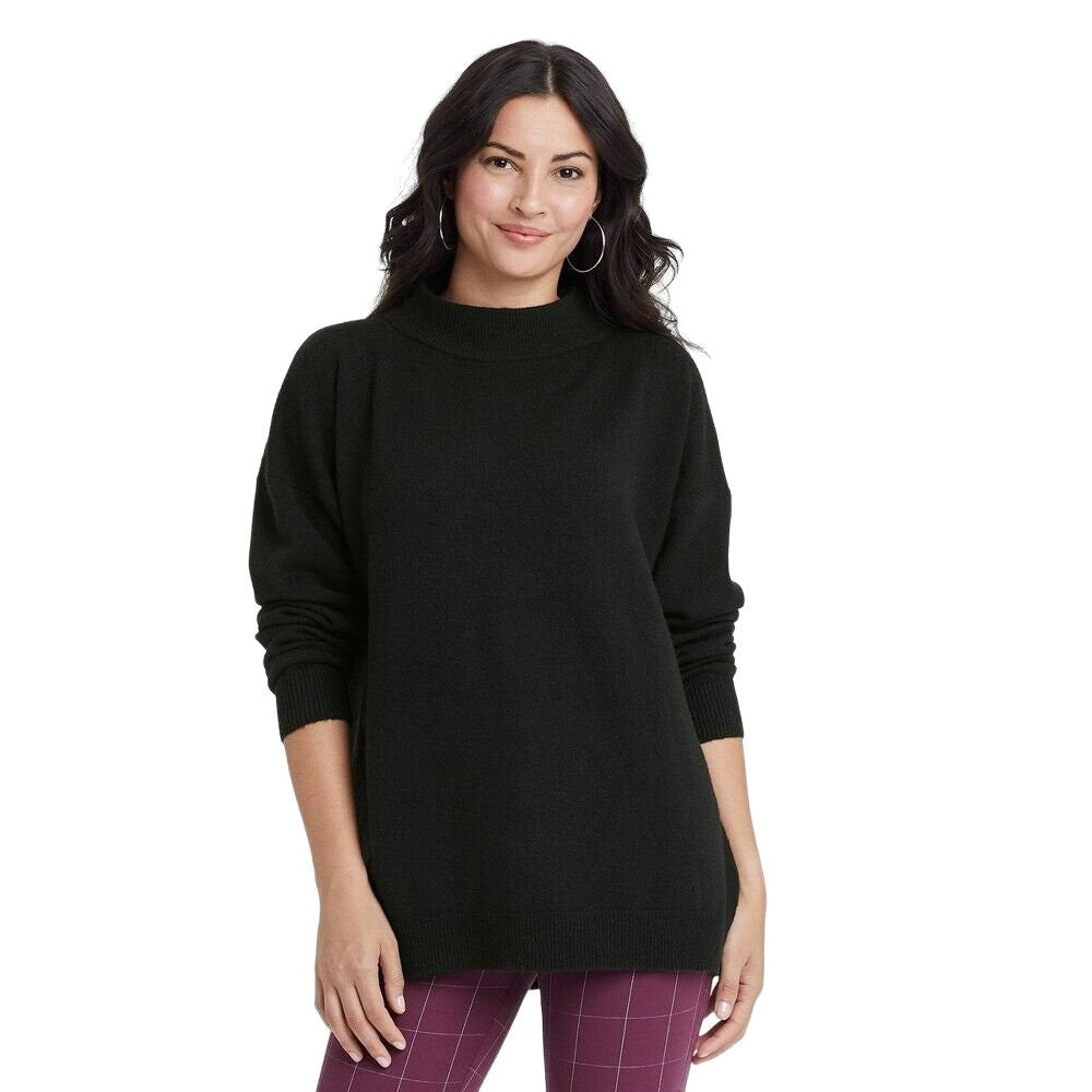 Women's Medium, Black, Slouchy Mock Turtleneck Pullover Sweater - A New Day