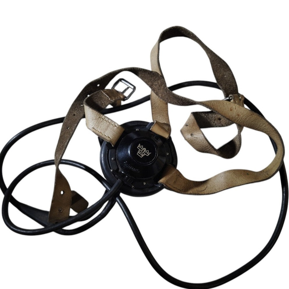 WWII Bakelite Radio Plug-In Headset, Rubber Sleeve Cushion, Original Straps