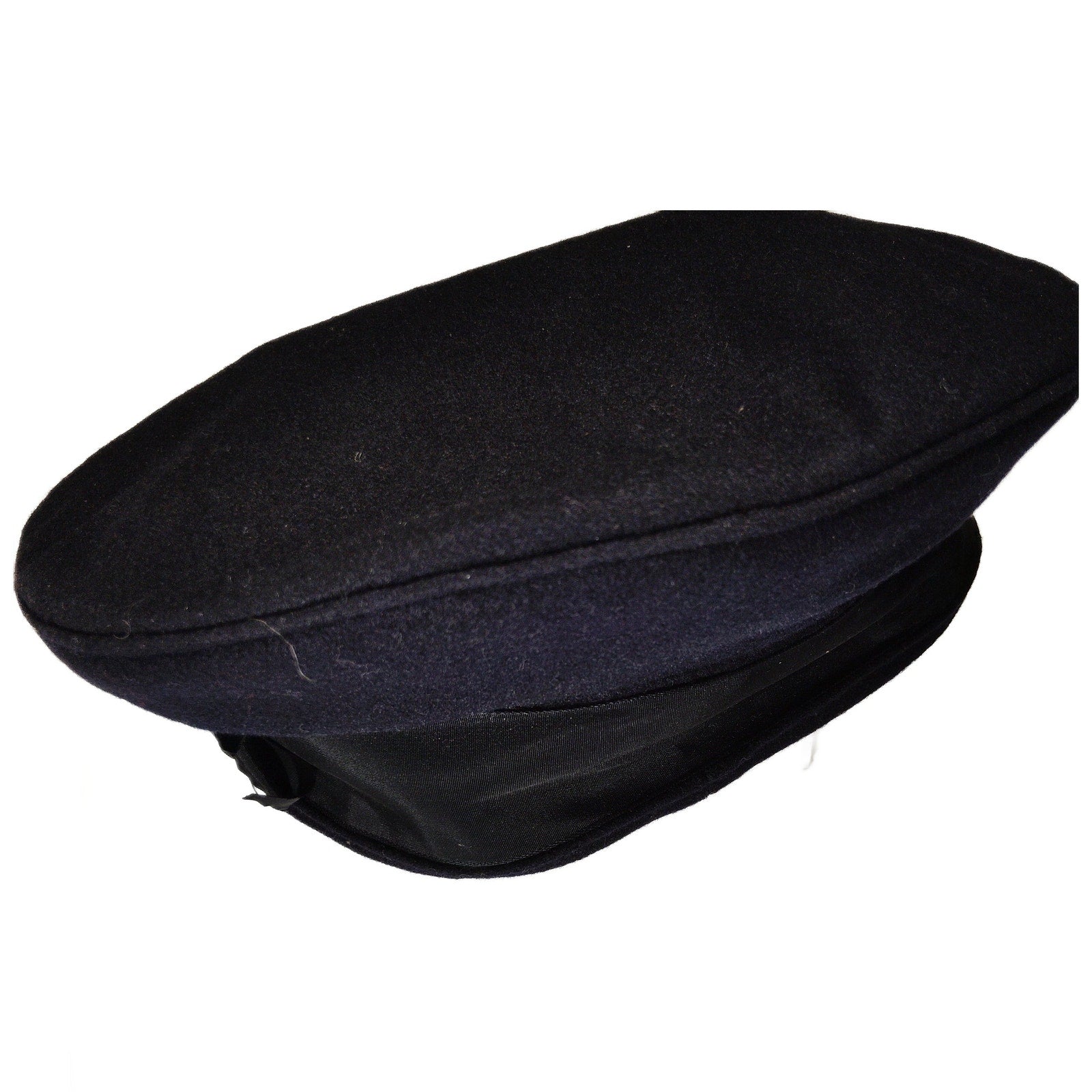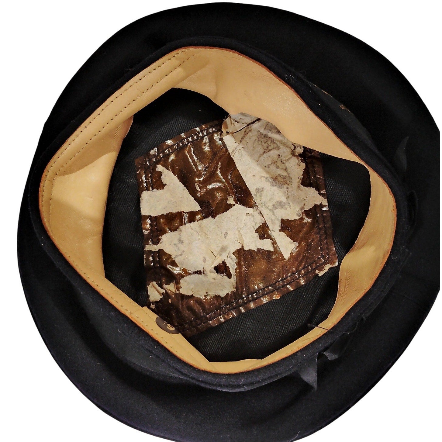 Authentic WWII to Korean War-era U.S. Navy enlisted formal wool cap, size 6-1/2. Features a dark navy blue wool top with a black band embroidered in gold with “U.S. NAVY.” Originally unissued surplus, these caps were stored long-term and show varying degrees of age-related patina. Each cap will be listed individually to reflect its unique condition. Ideal for collectors, reenactors, or historical display.