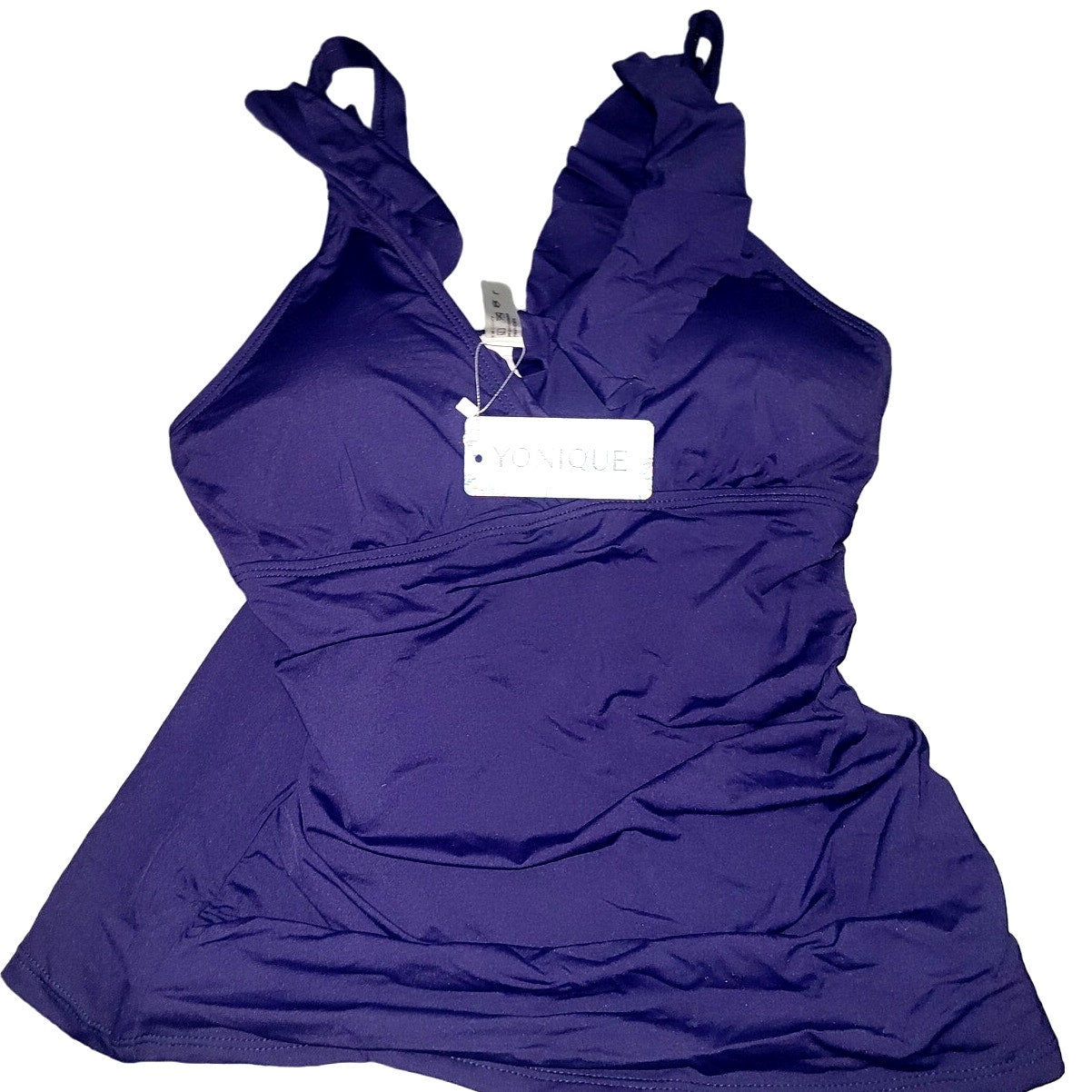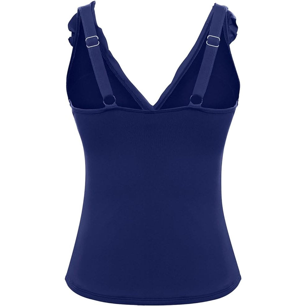 Yonique Tankini Top Only Tummy Control Top Ruffle Swimsuit Top V-Neck, L (12-14)