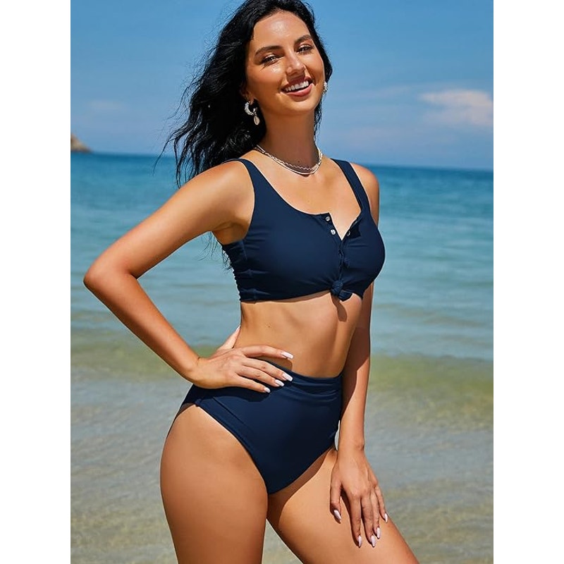 Moderate Coverage Bikini Bottom: High-waisted cheeky bikini bottom, women tummy control swimsuit, ruched bikini, high cut bikini lengthen the leg line, making you look slimmer. A modest bikini makes you feel confident and comfortable.