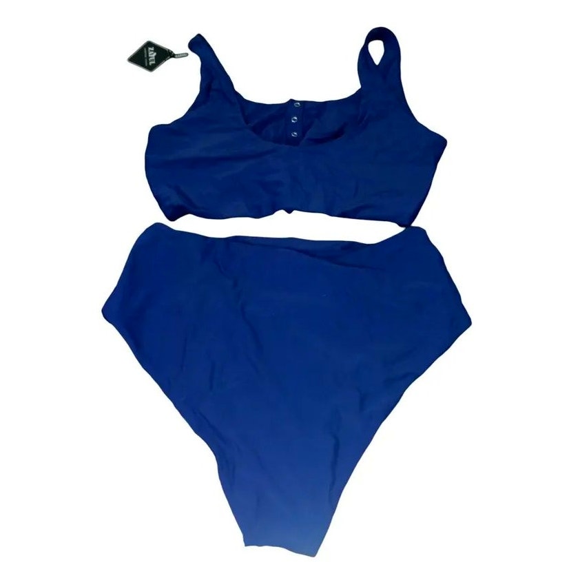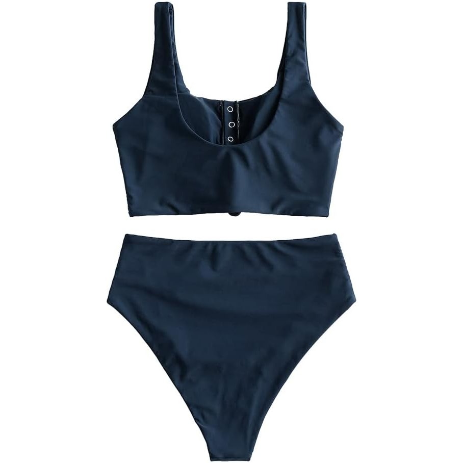 ZAFUL High Waisted Bikini Scoop Neck Swimsuit Two Pieces Dark Blue XL (12-14)