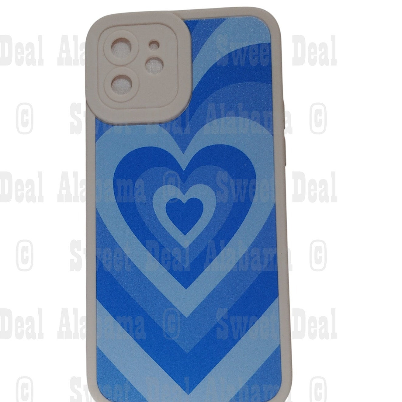 - Design: Blue heart pattern with precise cutouts for buttons and camera