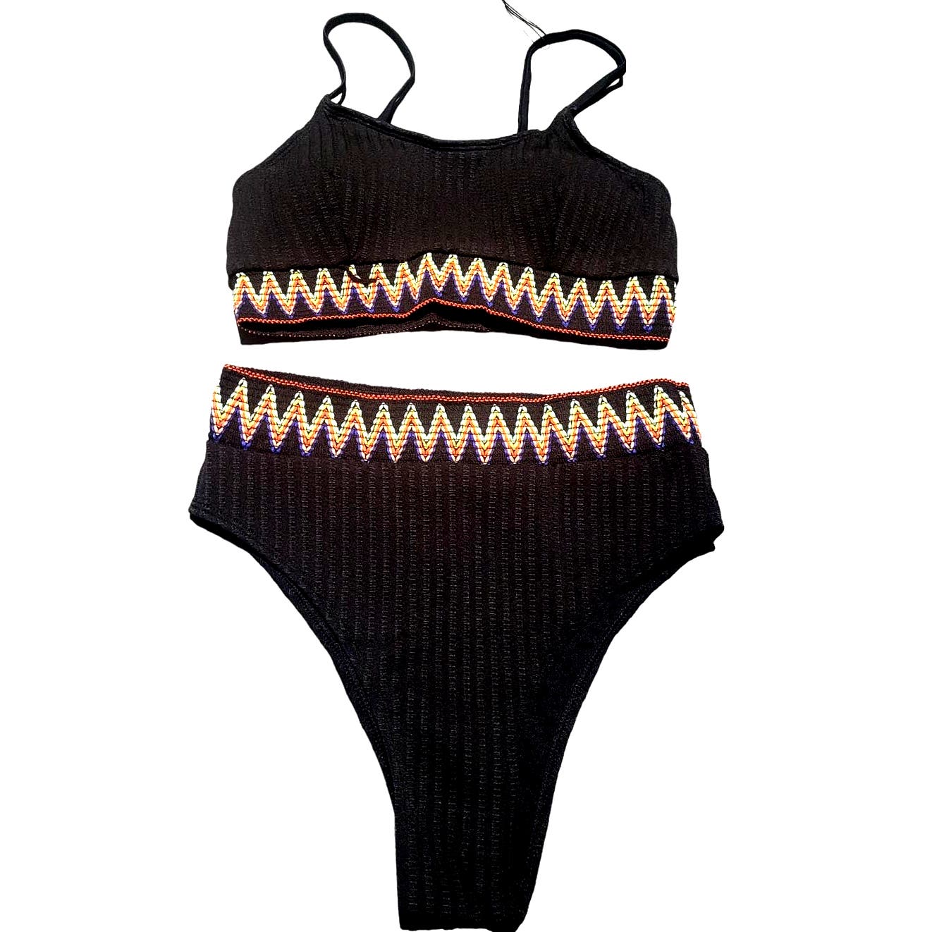 Zuvebamyo High Waisted 2-Piece Ribbed Bikini Set Crop Top High Cut Cheeky, Small