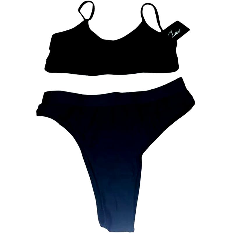 Zuvebamyo NWT High Waisted 2-Piece Ribbed Bikini Set Crop Top High Cut Cheeky, M